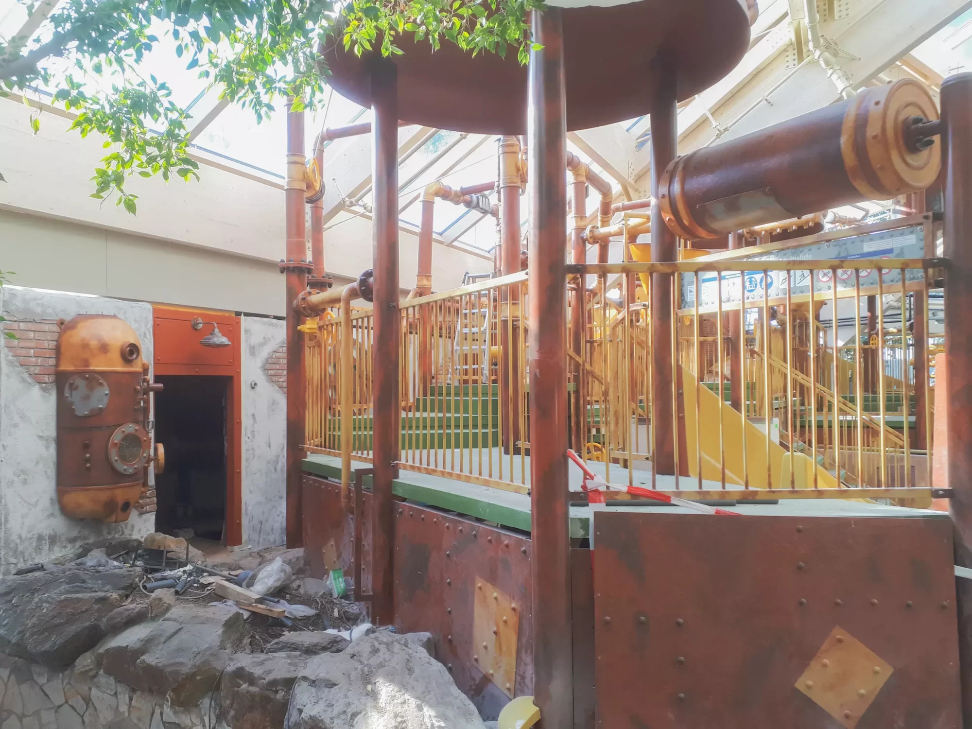 We hebben in Centerparcs Erperheide gewerkt aan schilderwerk en decoratie van de 'Water Factory'. Dit is een mooi zwembad en themapark voor kinderen. Voor deze opdracht hebben we ons bezig gehouden met het voorbereiden en aanbrengen van een twee componenten verfsysteem op speelstructuren voor kinderen. Dit in een decoratief uiterlijk van een oude roestige fabriek, de 'Water Factory'. Daarnaast hebben wij delen van de muren decoratief gestuct met gebrokkelde steen structuren en de decoratieve afwerking geschilderd. Dit ook weer in de stijl van een zeer oude gebruikte fabriek met de nodige mankementen. Na oplevering werd de gehele uitstraling in combinatie met licht en geluid een soort show beleving voor de kinderen met diverse effecten. Wij verzorgen voor deze opdrachtgever ook de afwerking van de diverse beton/polyester onderdelen van het zwembad en speelstructuren. Het gaat hier vaak om de afwerking met twee componenten verfsystemen welke egaal of in decoratie worden toegepast soms met antislip of andere afwerkingscoatings.